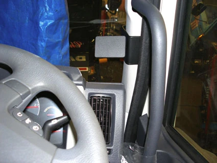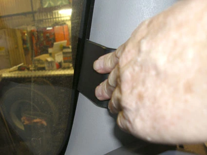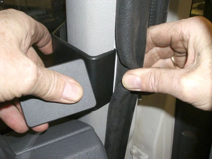 Press forward on the ProClip so the angled edge on the left part hooks behind the panel by the windshield.