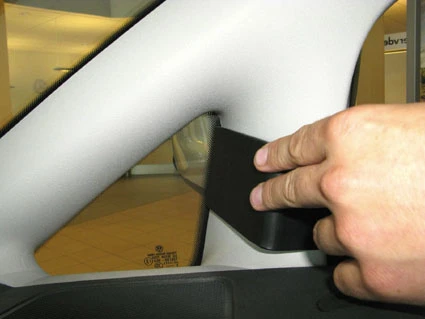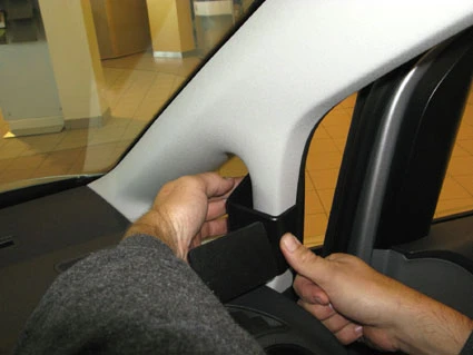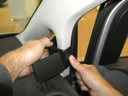 Press the ProClip toward the A-post so it hooks into place properly and the adhesive tapes attach.