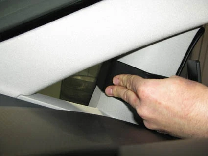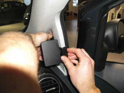Press the ProClip forward/upward so the angled edge hooks around the A-post by the front sidewindow.
