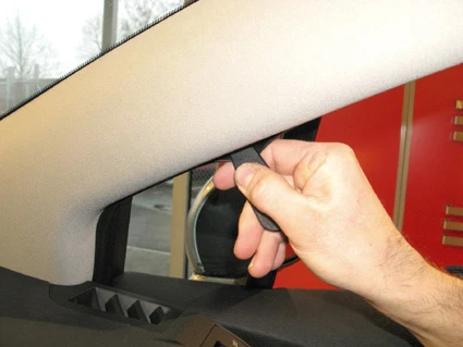Press the angled edge of the ProClip into the gap and hook it around the A-post.
