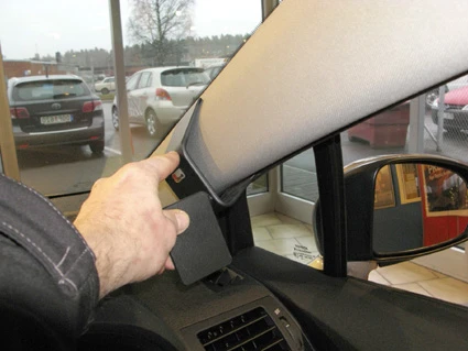 Press forward/upward on the ProClip so the angled edge hooks around the A-post by the windshield.