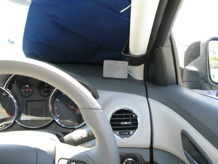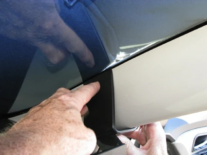 Press the ProClip upward/forward so the angled edge on the upper part hooks around the A-post by the windshield. Press the upper part of the ProClip toward the A-post so the angled edge hooks properly in place.