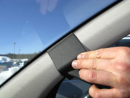 Press the upper part of the ProClip toward the A-post so the angled edge hooks into place properly.