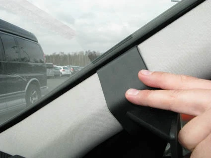 Press the ProClip upward/rightward so the angled upper edge hooks around the A-post by the windshield.