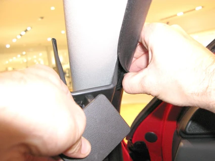 Pull out the rubber sealent on the A-post slightly.