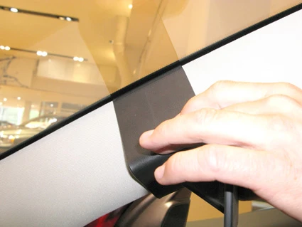 Press the ProClip upward/forward so the angled upper edge hooks around the A-post by the windshield. Press down on top of the ProClip so the angled edge hooks properly into place.