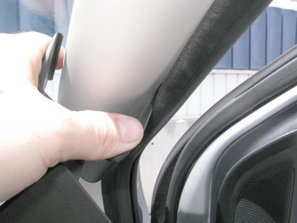Pull out the rubber sealent on the A-post slightly, to widen the gap.