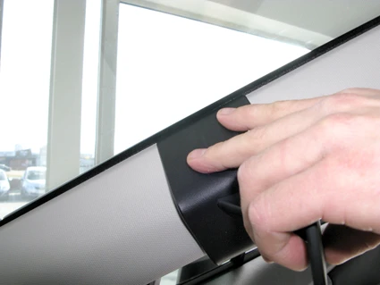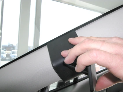 Press the ProClip upward and forward so the upper angled edge hooks around the A-post by the windshield.