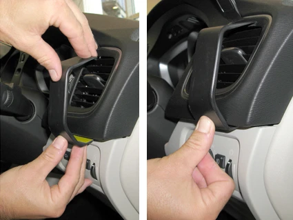 Press the angled edge on the lower part of the ProClip into the gap under the dashboard surrounding the air vent. Press the lower part of the ProClip upward so all of the angled edge goes into the gap.