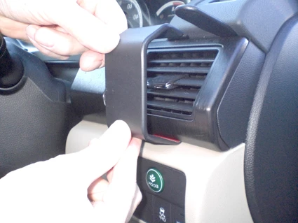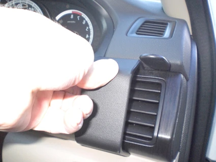 Press the curved edge on the lower part of the ProClip into the gap between the air vent panel frame and the dashboard ledge.
