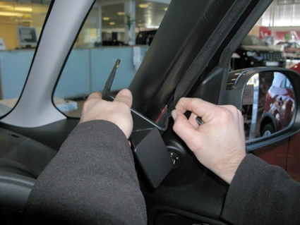 Press the ProClip upward/forward so the angled upper part goes around the A-post.