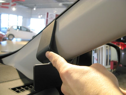 Press the ProClip upward/forward so the angled upper part goes around the A-post.