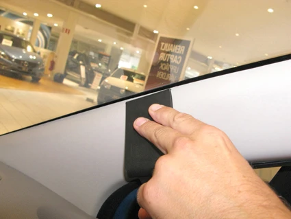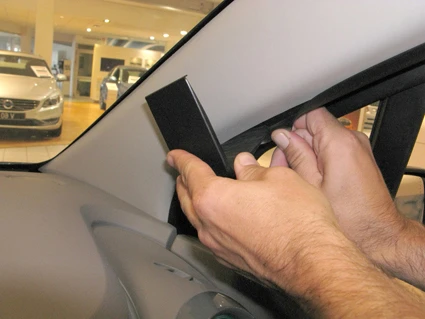 Use the enclosed alcohol pad to clean the area where the ProClip is to be installed. Pull out the rubber sealent on the A-post slightly. Remove the adhesive tape cover on the ProClip.