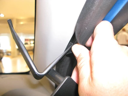 Press the ProClip upward/forward so the angled upper edge hooks around the A-post.