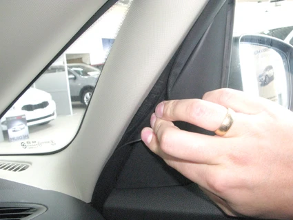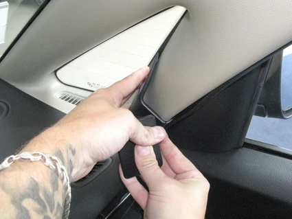 Press the ProClip upward/forward so the angled upper edge hooks around the A-post.