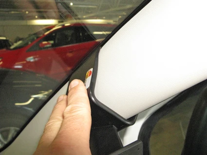 Press the ProClip upward/forward so the angled upper edge hooks around the A-post.