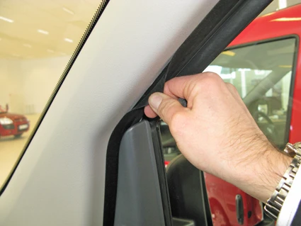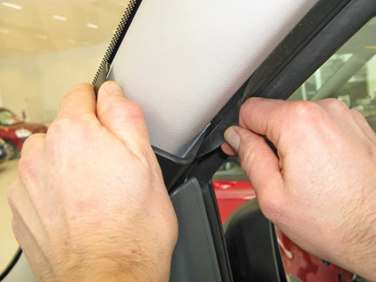 Use the enclosed alcohol pad to clean the area where the ProClip is to be installed. Pull out the rubber sealent on the A-post slightly. Remove the adhesive tape cover on the ProClip.