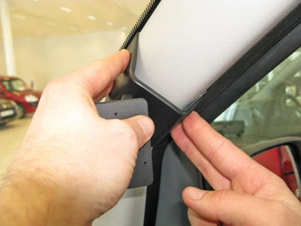 Press the angled edge on the lower part of the ProClip into the gap and hook it around the A-post.