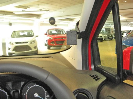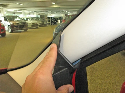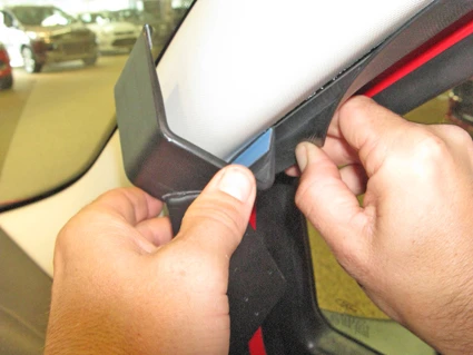 Press the ProClip upward/forward so the angled upper edge hooks around the A-post.