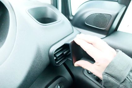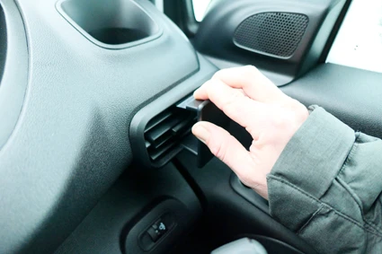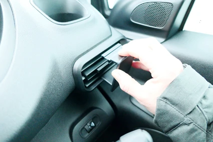 Press the upper part of the ProClip downward and forward. Hook the grooved edge on the upper part of the ProClip under the frame surrounding the air vent.