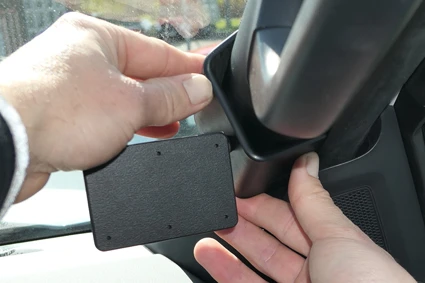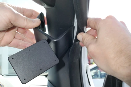 Press the ProClip upward/forward so the angled upper edge hooks around the A-post.