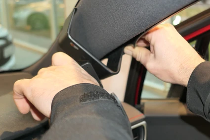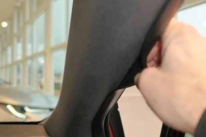 Press the ProClip upward/forward so the angled upper edge hooks around the A-post.