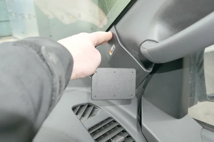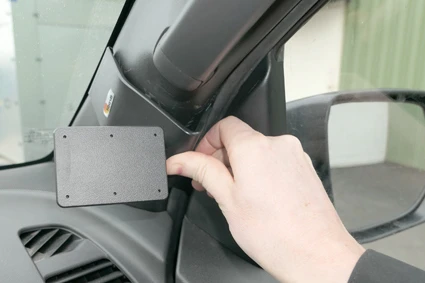 Press the ProClip upward/forward so the angled upper edge hooks around the A-post.