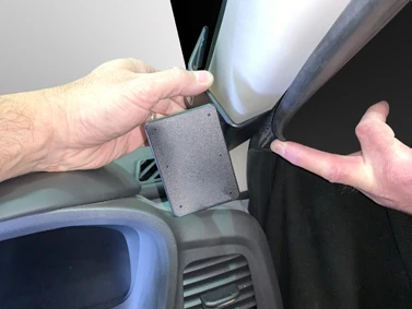 Press the upper part of the ProClip rightward so the angled edge hooks around the A-post.
