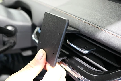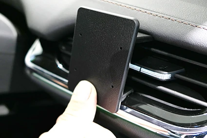Press the lower part of the ProClip upward/forward and hook it over the frame surrounding the air vent.