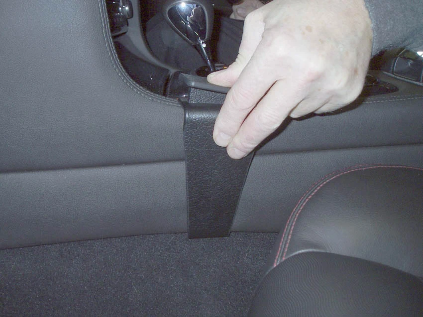 Press downwards on the left side of the ProClip so the angled edge on the lower part of the ProClip hooks under the edge of the console.