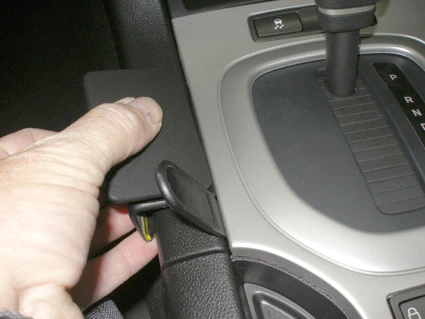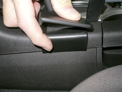 Press downward on the left side of the ProClip so the angled edge on the lower part snaps into the gap in the console side wall. Pull out the gap opener.
