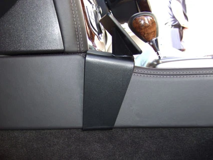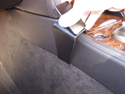 Press firmly down on the left side of the ProClip so the angled edge hooks under the console edge by the carpet.