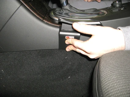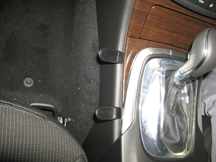 Press the left side of the ProClip downward so the angled edge hooks under the console edge.