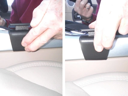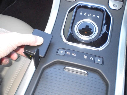 Push firmly on the left side of the ProClip so it flexes downward and hooks around the console sidewall edge. Press forward on the lower side of the ProClip to make sure the angled edge is hooked all way around the console edge.