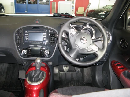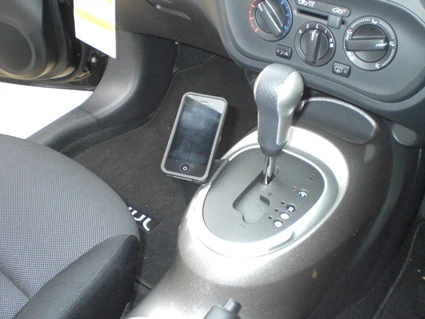 Press down on the top left side of the ProClip so it flexes downward and the angled edge hooks around the panel edge in the console sidewall. Press until you hear/feel it snaps into place.
