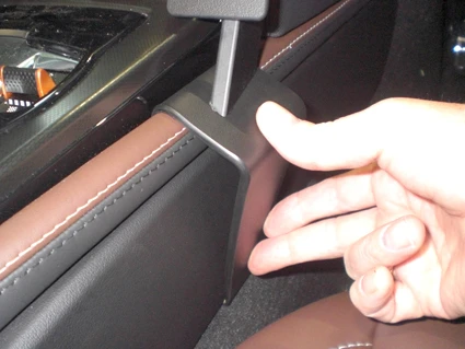 Use the enclosed alcohol pad to clean the area where the ProClip is to be installed. Peel off the adhesive tape cover on the ProClip. Press the angled edge on the upper part of the ProClip into the seam between the console sidewall and the frame or panel around the shifting area.