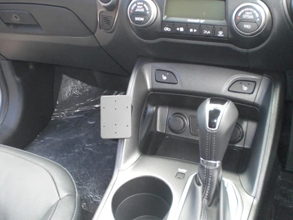 Use the enclosed alcohol pad to clean the area where the ProClip is to be installed. Remove the adhesive tape cover on the ProClip. Place the angled edge on the right side of the ProClip over the console edge.