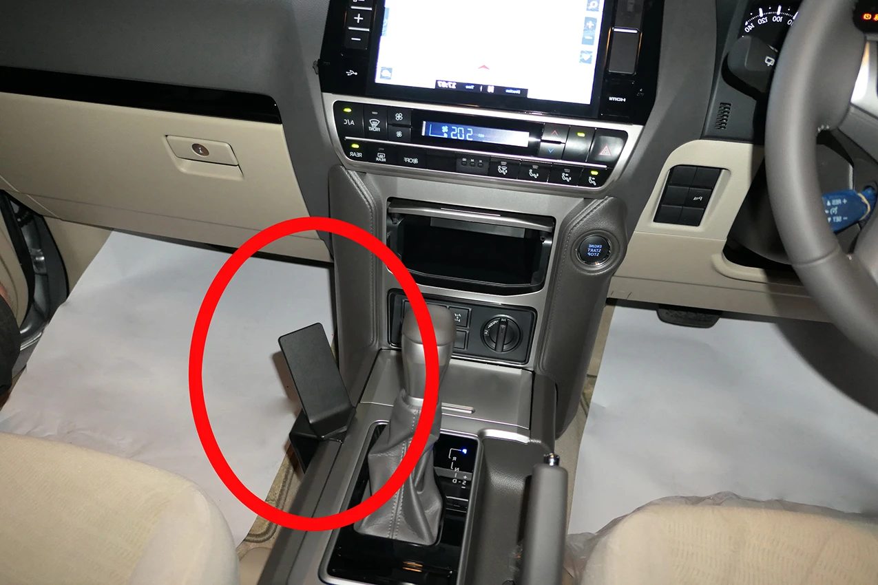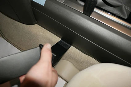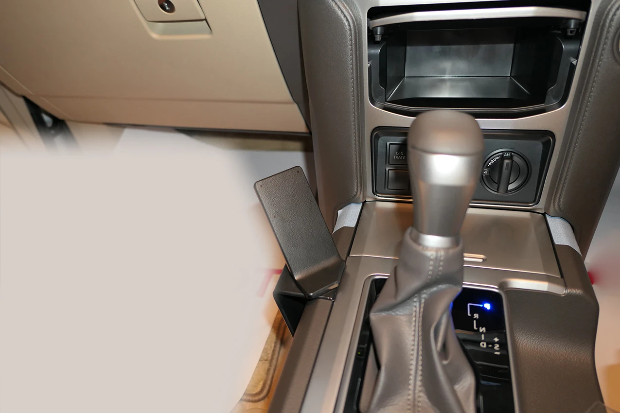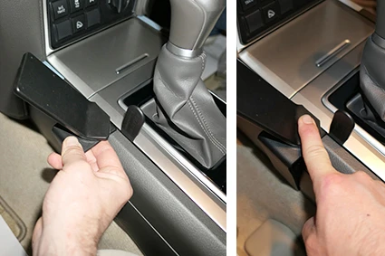 Press the lower edge of the mount into the gap between in the center console side wall.