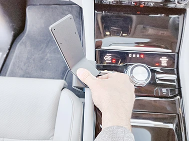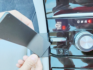 Insert the gap opening between the hard plastic trim and the soft trim on the lower part of the center console.