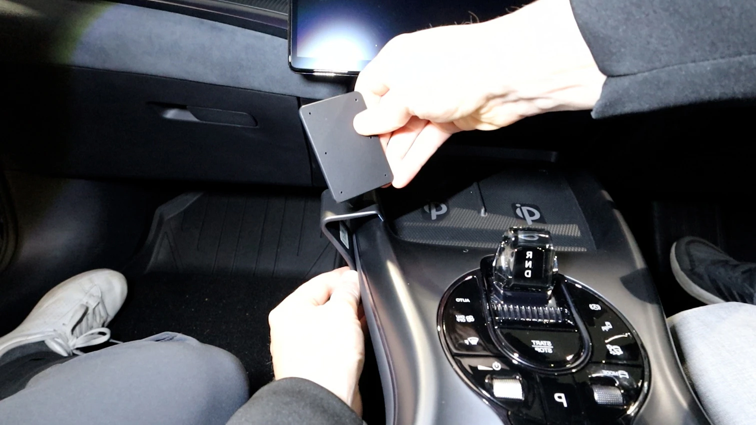 Pull the upper part of the mount upward and hook the upper edge over the center console.