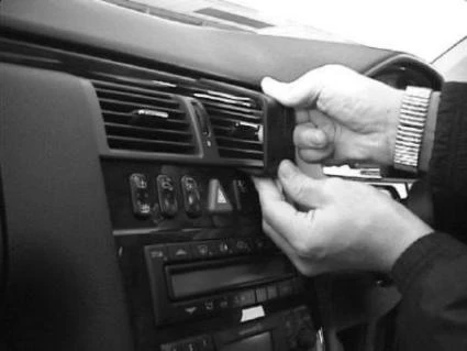 Press the upper part of the ProClip into the gap between the air vent and the padded dashboard at pos. 2.