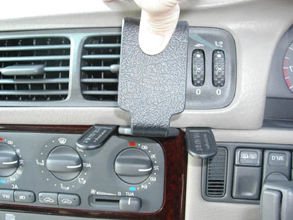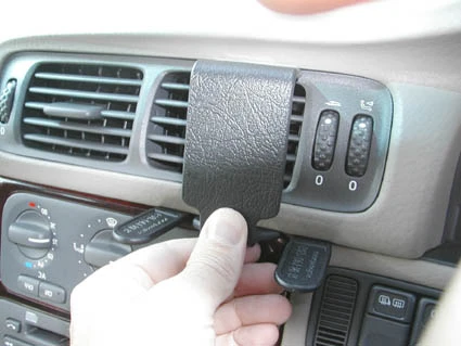 Press the grooved edge on the upper part of the ProClip into the gap between the air vent frame and the padded dashboard. Press until you see or hear/feel it snaps into place. (Note: if the gap is very tight, press the thin end of the two enclosed gap openers into the gap, one on each side of the ProClip, to widen the gap. Then press the ProClip into the gap)