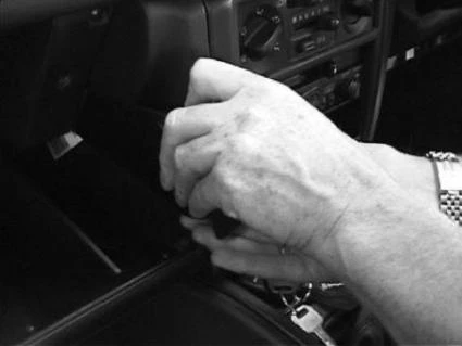 Pull the right side of the ProClip over the console frame edge and push the edge into the gap between the center panel and the padded console edge. Close the glove compartment.