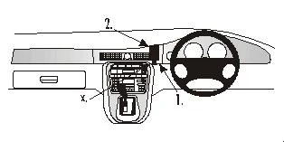 Press the lower part of the ProClip into the gap between the wood grain panel and the padded dashboard at pos. 1.