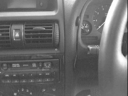 Press the left part of the ProClip, with adhesive tape, into the gap at between the control panel and the padded dashboard. Align the ProClip with the air vent.