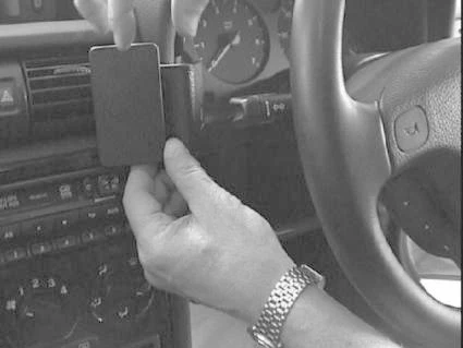Press the right part of the ProClip, with groove, into the gap between the both gap openers. Press forward and away from the steering wheel so the ProClip snaps into place. Pull out the gap openers.