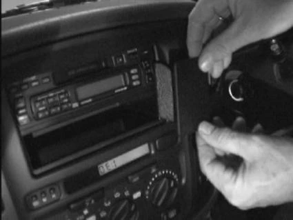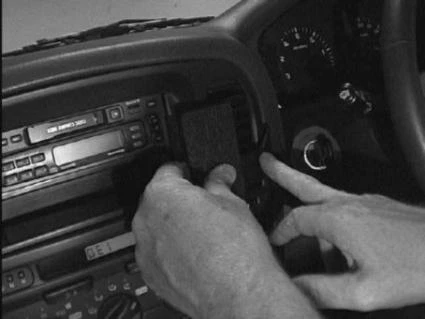Press the short right part of the ProClip into the gap between the radio and the control panel at pos. 1.