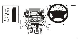 Press the enclosed gap opener into the gap between the control panel and the surrounding dashboard to widen the gap at pos 2. Press the long left part of the ProClip into the gap next to the gap opener at pos. 2.