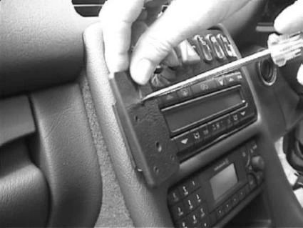 Peel off the cover of the adhesive tape on Part 2 and place it onto Part 1. so the holes match up and the adhesive tape on Part 2 is on the left side attaching to the center console panel. Screw the enclosed screws into the holes in Part 2.