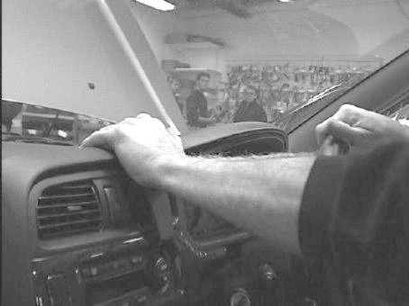 Press forward on the upper part of the ProClip so the angled edge goes into the gap between the air vent panel and the padded dashboard. Press until you see or hear/feel it snaps into place.